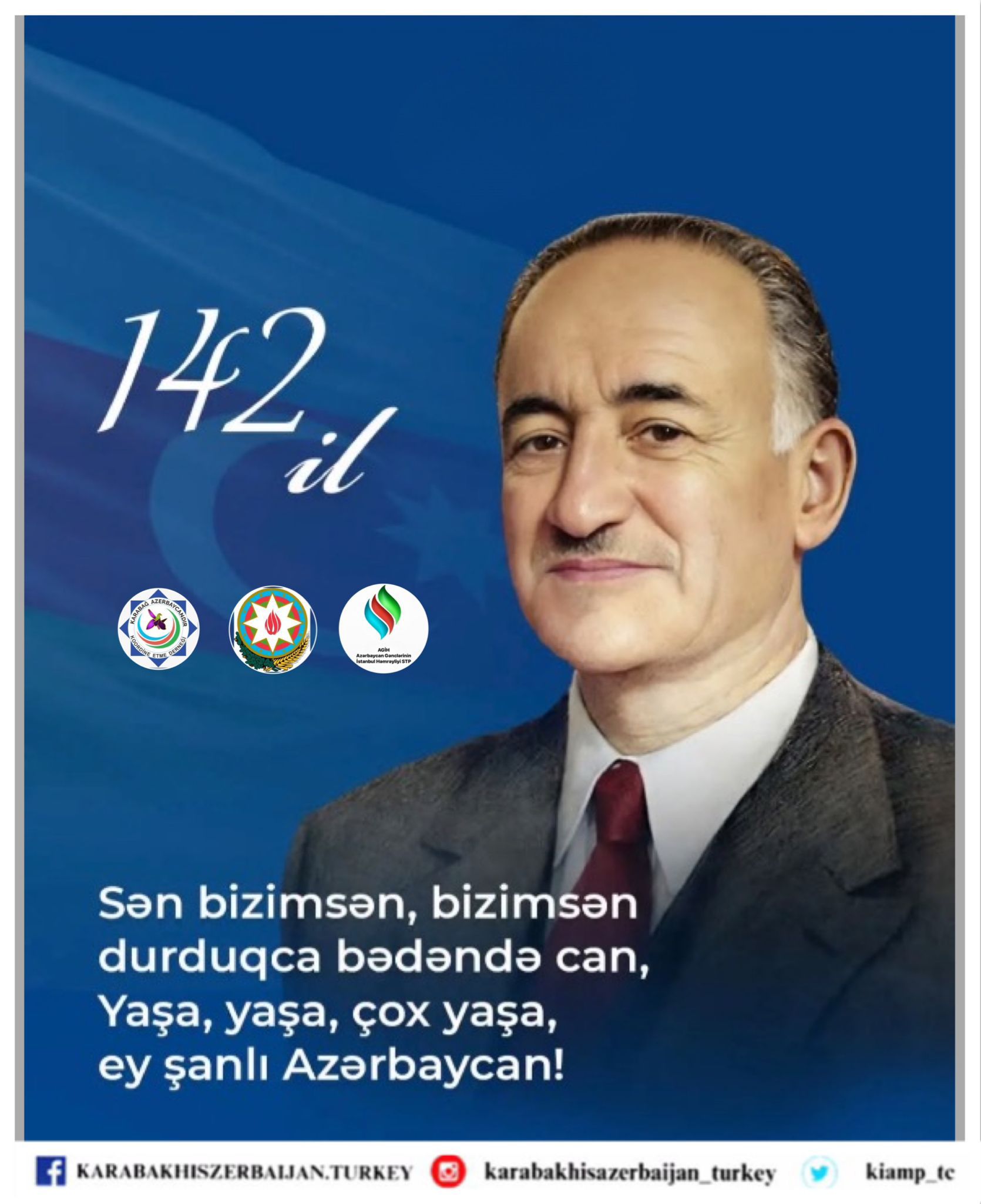 KİAMP – Karabakh is Azerbaijan Milli Platformu T.C. Genel Koordinatörlüğü ve Karabağ Azerbaycandır Koordine Etme Derneği olarak, Resulzade’nin “Bir kere yükselen bayrak, bir daha inmez!” vasiyetinin bugün Karabağ Zaferi ile mutlak bir gerçeğe dönüştüğü vurgulanmıştır. Bugün azad edilen Şuşa semalarında dalgalanan bayrak, Resulzade’nin ruhuyla ve “Tek Millet, İki Devlet” sarsılmazlığıyla geleceğe taşınmaktadır. Nitekim KİAMP olarak bizler, bu kutsal emaneti her platformda en üst düzeyde temsil etmeyi bir milli vazife addediyoruz. Büyük liderin aziz hatırası önünde saygıyla eğiliyor; hür, müstakil ve muzaffer Azerbaycan’ın istiklalinin ebedi kalacağını tüm dünyaya ilan ediyoruz.